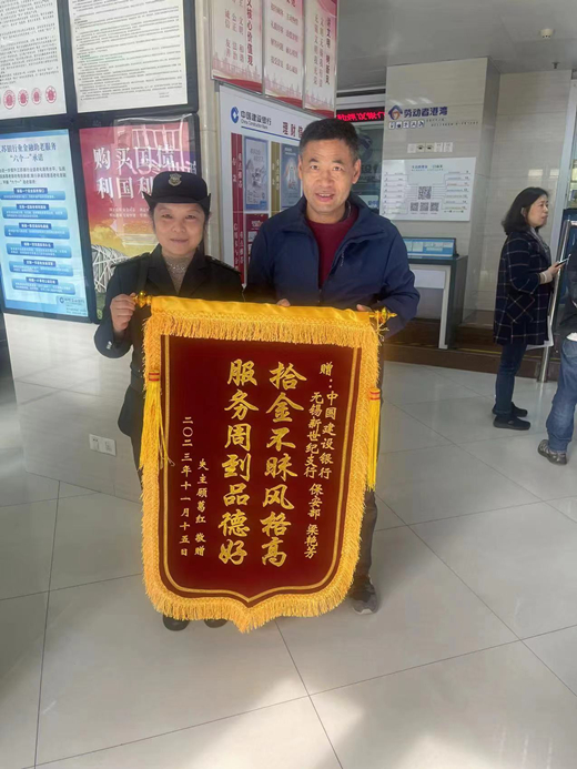 建行保安拾金不昧 千元現(xiàn)金物歸原主